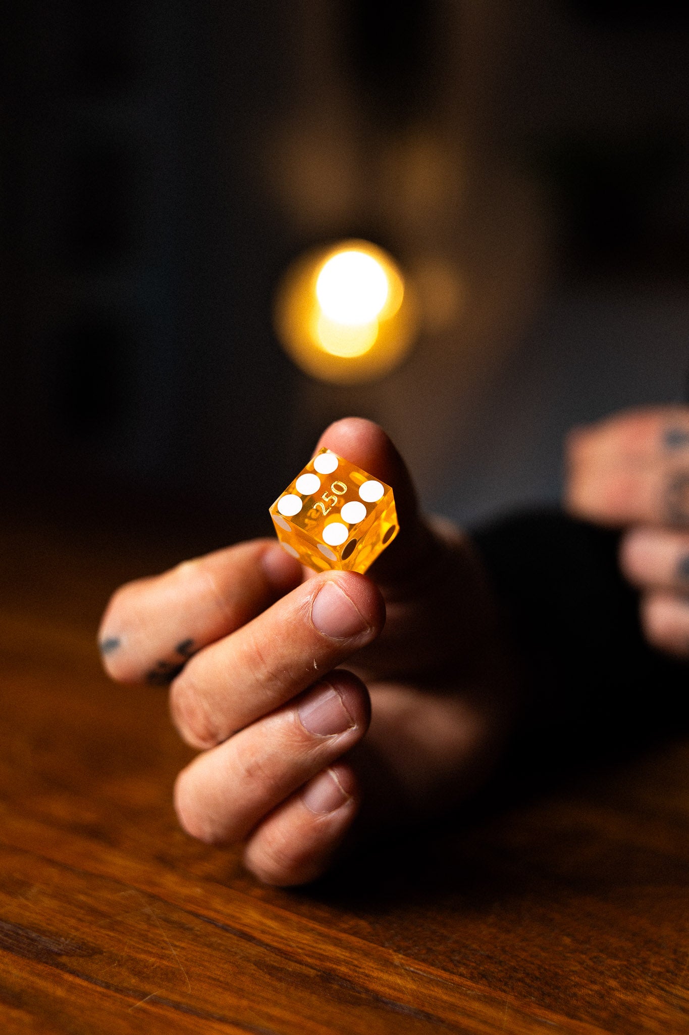 A Set of Five Custom and Numbered Acrylic Casino Dice